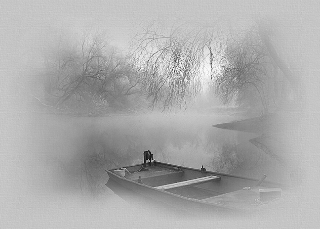 Finalmente, o velho barqueiro, segurando os dois remos, remou com eles